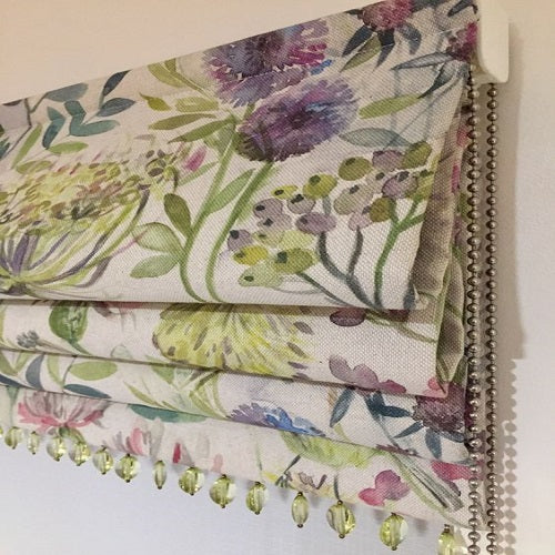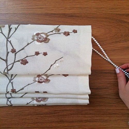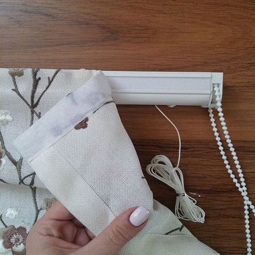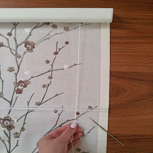 Pull the draw cord from the track and fix to the rings behind the roman shades - top to bottom