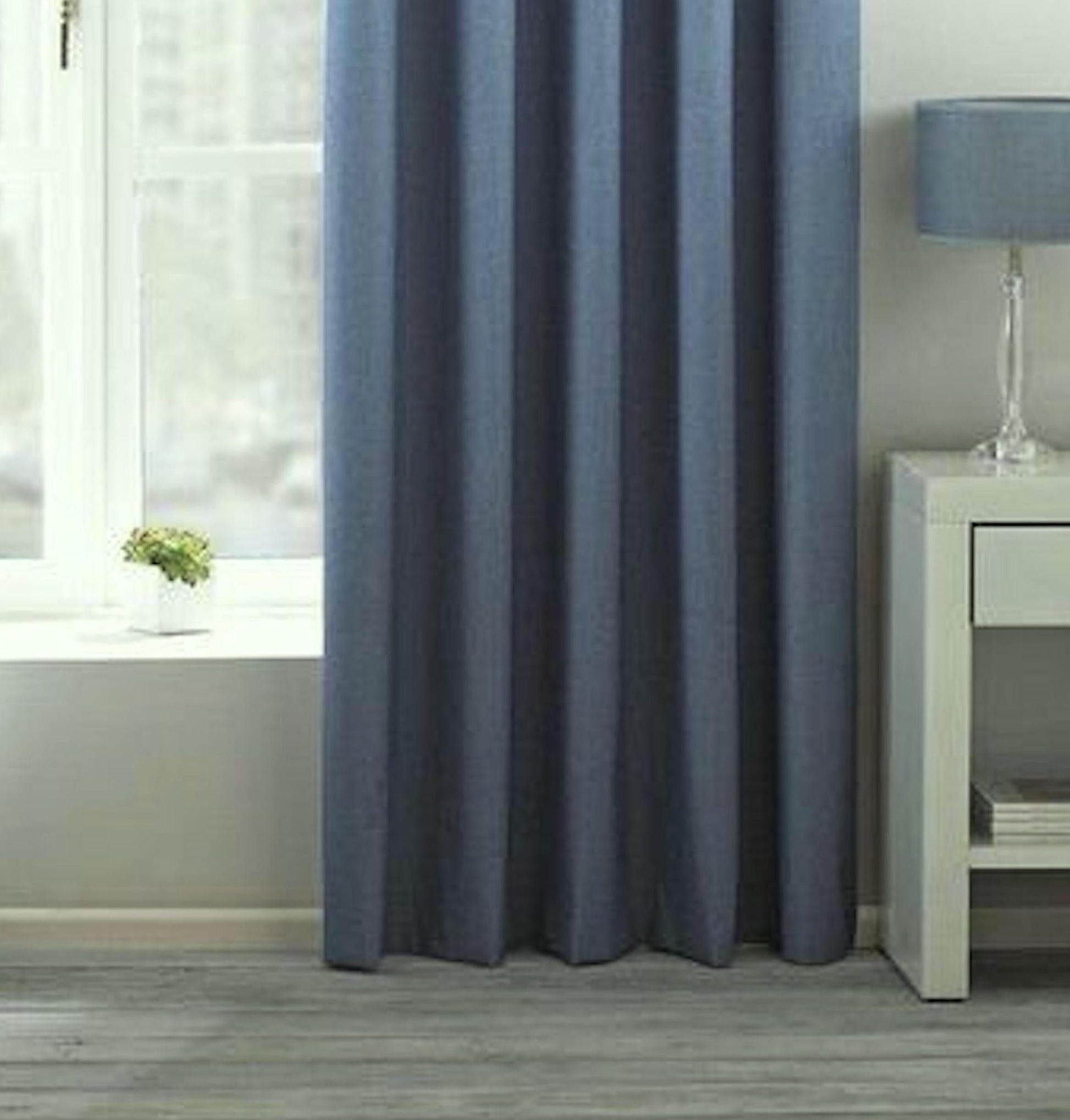 Faux Silk Dupioni Solid Drapes Curtains Denim Blue